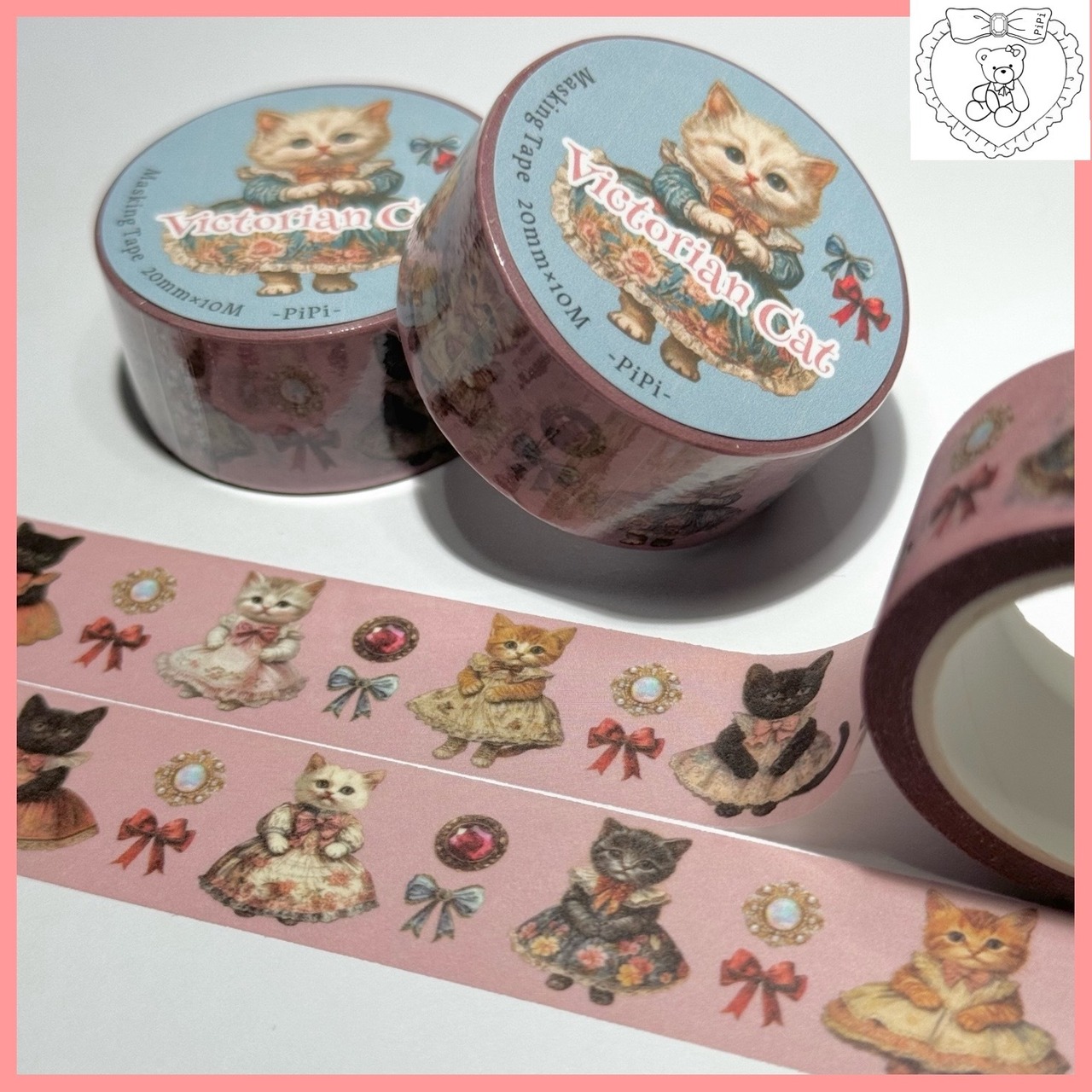ドレスを着た可愛い猫ちゃんとアクセントにリボンと宝石を配置いたしました☺︎